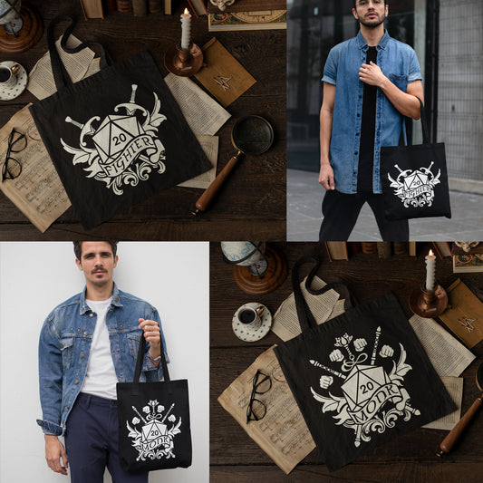 Black Tote Bags with D&D Class Symbols | Set of 12 Unique Designs | Perfect for Dungeon Masters and RPG Enthusiasts