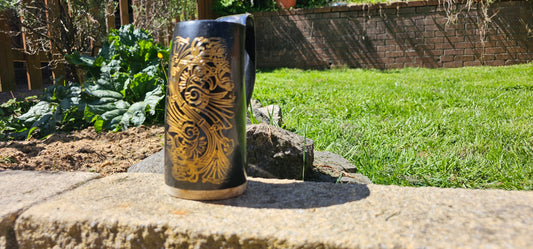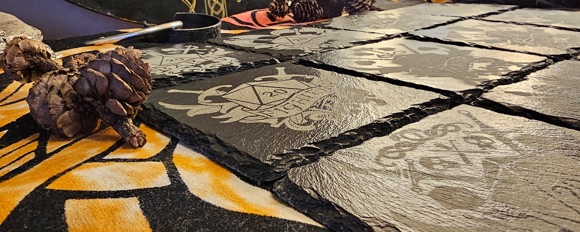 Handcrafted Wooden Dungeon Master Dice Tray with Leather Engraved Base and Decorative Metal Corners (Copy)