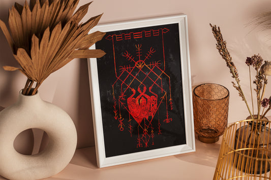 Vegvísir Nordic Symbolism Knotwork Art Print
