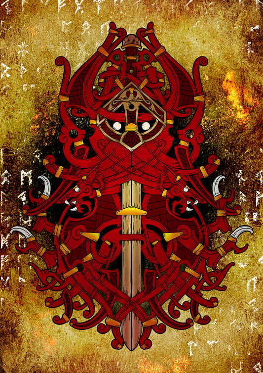 Knotwork Odin - Norse Celtic - Inspired by Book of Kells - Coloured