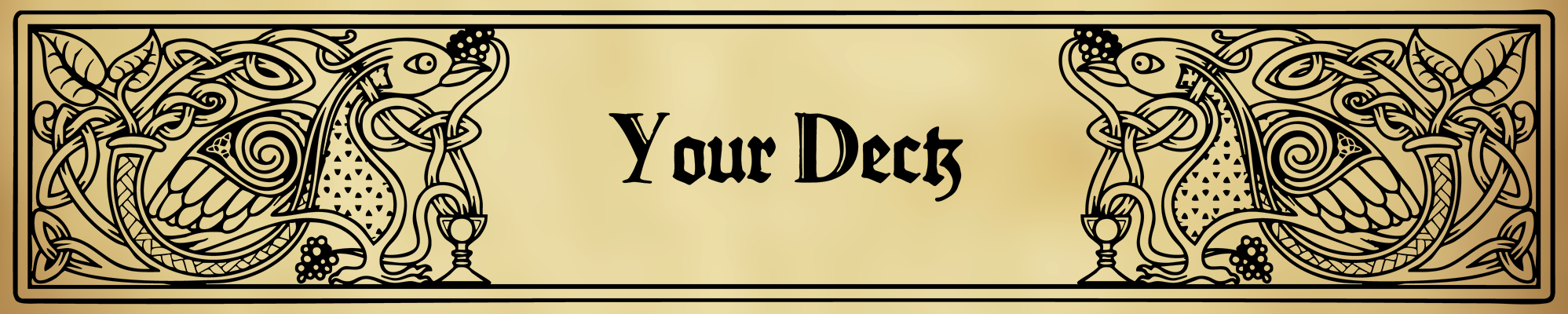 The Major Arcana: this deck is one-sided and is used as a Mechanical Deck. Each card’s face will show a deity or figure from Welsh Mythology as well as a Boon (a positive effect relating to the Minor Arcana) and Bane (a negative effect relating to the Minor Arcana). These Boons and Banes have a corresponding Englyn which the player can interpret to use in their journal. Players will draw a Hand from this deck and resolve story prompts by discarding cards from their Hand. If they run out of cards, the player has died. However this may not be the end of their story…